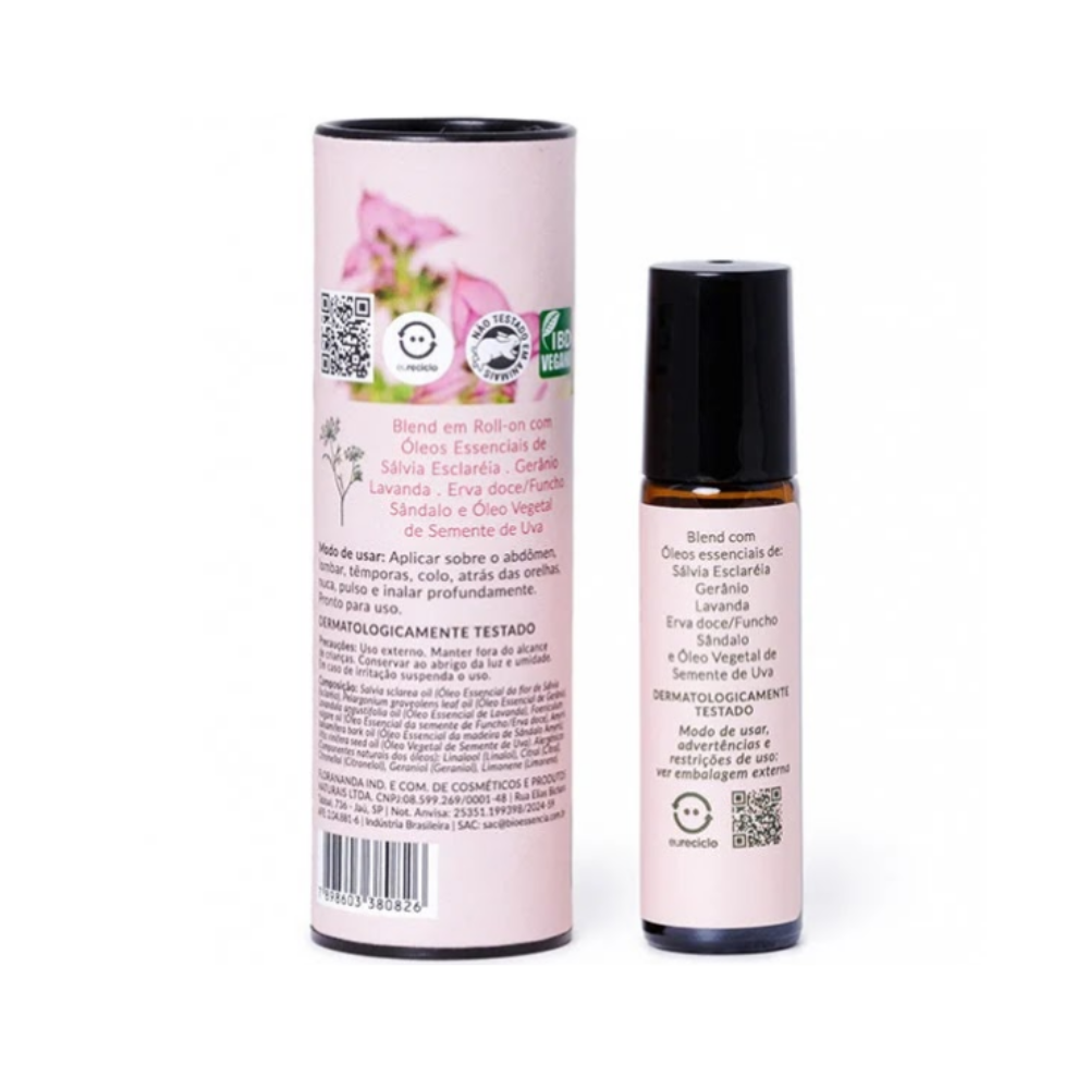 Durante o ciclo menstrual, TPM ou menopausa, este blend auxilia ao amenizar os sintomas mais fortes, além de colaborar com a regulação do ciclo e equilíbrio emocional. Promove autoestima e tranquilidade.